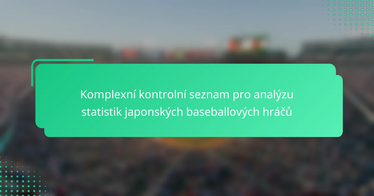 Klíčové statistiky pro analýzu japonských baseballových hráčů zahrnují průměr úspěšnosti, procento na základně, procento úderů, Wins Above Replacement (WAR) a defenzivní metriky. Tyto statistiky poskytují přehled o ofenzivních a defenzivních příspěvcích hráče, což pomáhá skautům a analytikům efektivně hodnotit výkon.